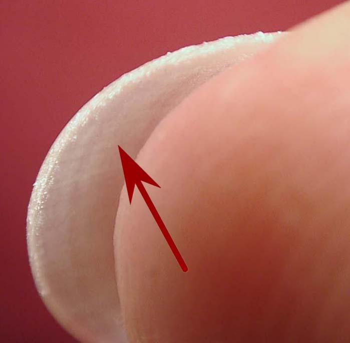 Nachdem man mit 1.800 und 2.400 poliert hat, verschwindet der natürliche Glanz, die Oberfläche wird aber spürbar glatter. Wenn man auf das Bild links klickt bekommt man eine größere Ansicht und sieht besser den weißen Schleier der bei Verwendung der gröberen Körnungen entsteht. Es handelt sich aber durchaus schon um Politur, weil keine Riefen entstehen, wie bei der Verwendung von Schleifpapier! Man darf sich nicht davon täuschen lassen, das die Stärken 1.500 - 2.400 relativ grob aussehen. Die größeren Schleifkristalle werden beim Polieren in die Latexschicht gedrückt, die zwischen den Kristallen und dem Leinen liegt und somit entsteht eine plane Oberfläche. |