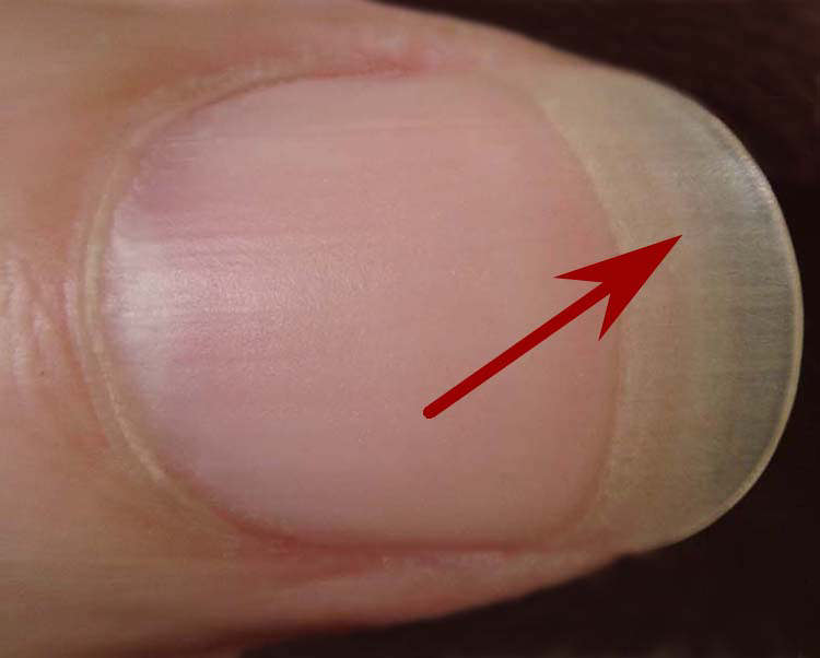 Der unpolierte Nagel hat einen leichten natürlichen Glanz, aber doch eine relativ grobe Struktur. |
